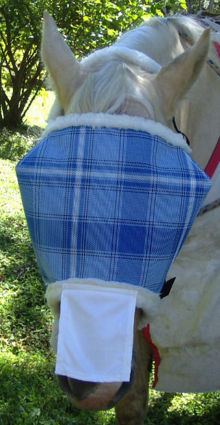 Optional nose flap can be attached to hood or fly masks.